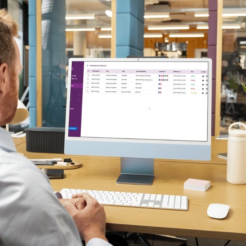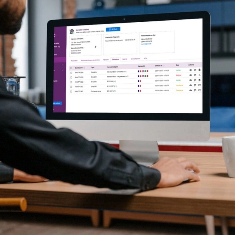 - Diffusions et consultations : envoyez vos protocoles à vos transporteurs ou sous-traitants, recevez ceux de vos clients, et offrez aux conducteurs un accès simple et immédiat aux consignes de sécurité.