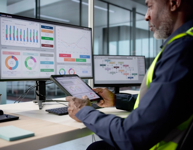 Nos équipes vous accompagnent pour centraliser vos données, suivre les indicateurs clés et identifier rapidement les actions à mener, afin de garantir le respect de la chaîne du protocole de sécurité sur l’ensemble de vos sites et de vos entités.